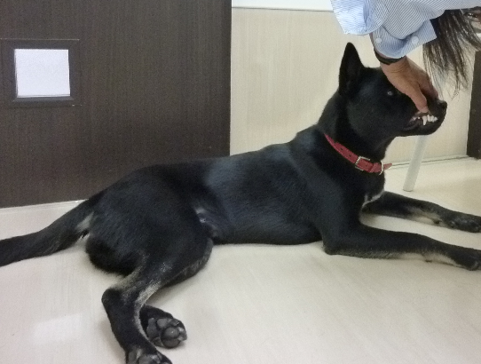 最初はご褒美がほしくてオテをしてみたり、イヤイヤと頭を後ろに引いたりしていましたが、何度か練習をすると上手にじーっとすることが出来ました